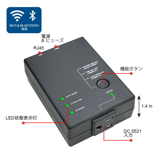 ezOutlet5は、ウェブインターフェース、アプリ制御、クラウド管理機能を内蔵した自律型電源リセットデバイスです。その主な機能は、次のいずれかの場合に検知し、自動的に電源サイクルを実行することです。