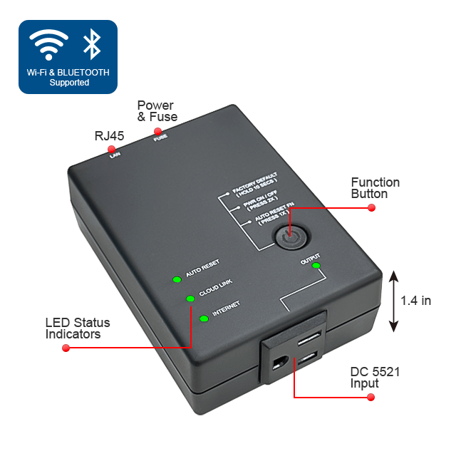 ezOutlet5 is an autonomous power-reset device that comes built-in with Web interface, APP control and Cloud management functions. It’s primary function is to detect and automatically executes a power-cycle when either;