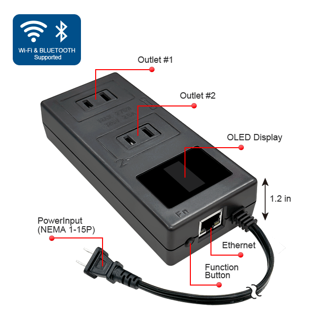 The ezOutlet5-2R features two individually controllable AC outlets accessible via LAN or Cloud. It is ideal for powering network device such as Gateways/Router, Wireless AP / Bridges, Hubs, Switches, IP Camera, and etc.